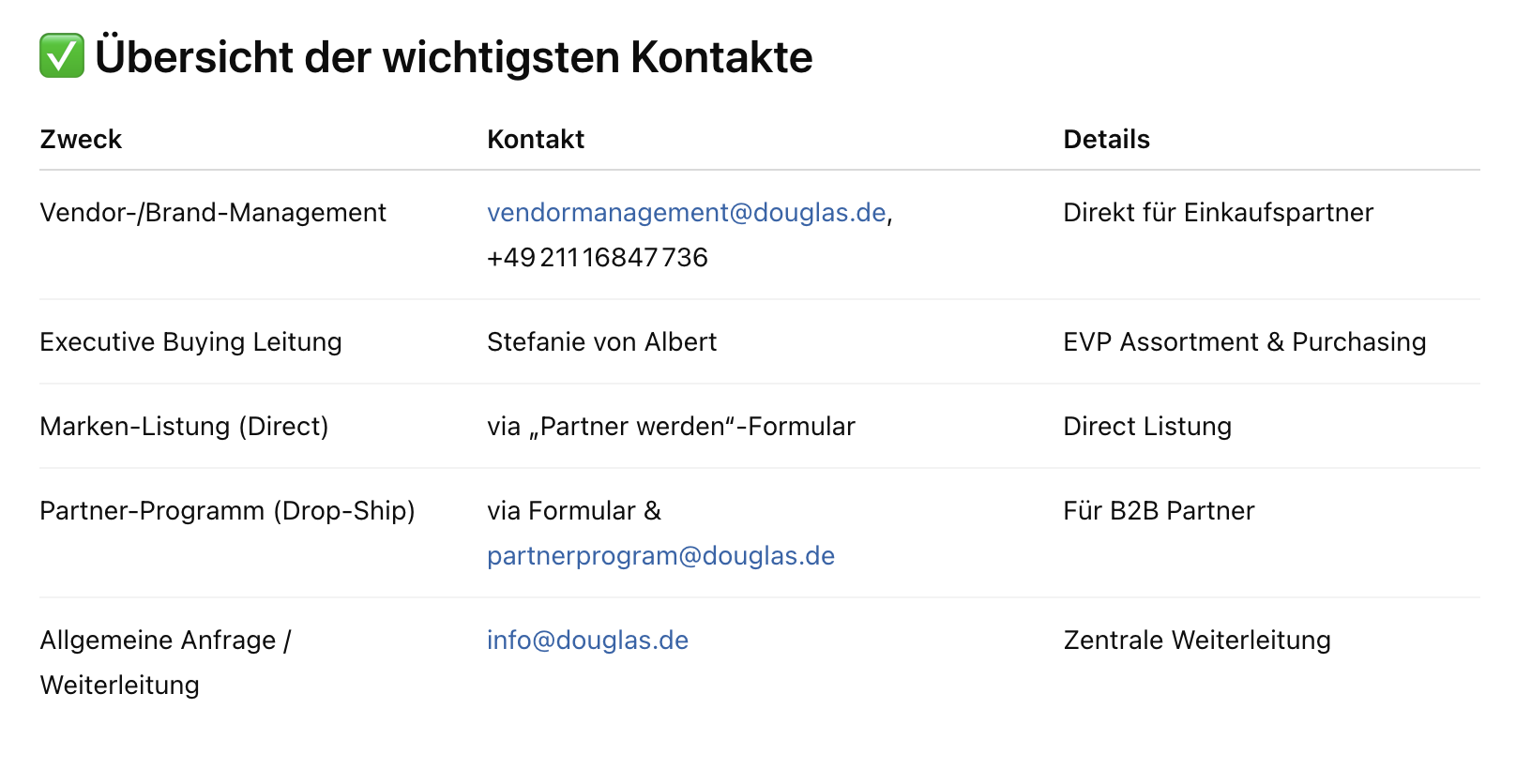 vendormanagement@douglas.de (Direkt für Einkaufspartner)